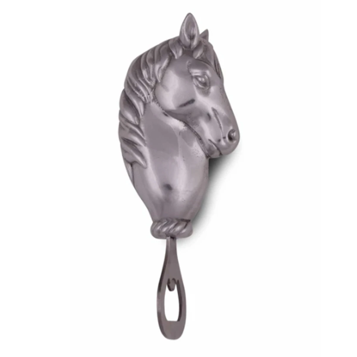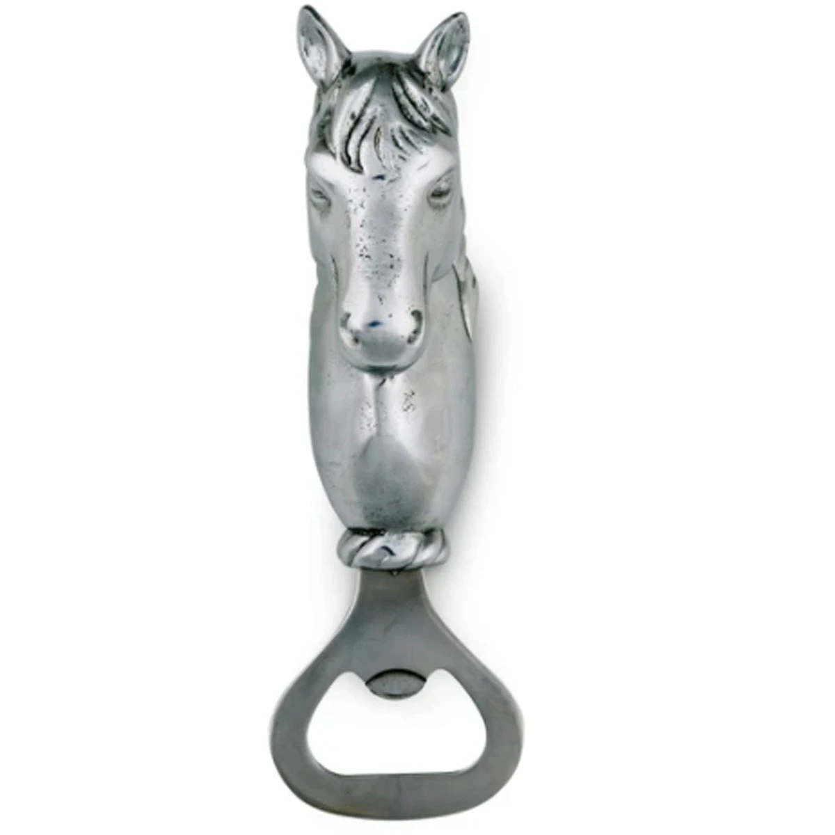 A beautiful horse head adorns this piece, its stoic demeanor reflecting the honor bestowed upon these animals. The lifelike detail in its perky ears and elongated muzzle only accentuate this handmade, aluminum opener.