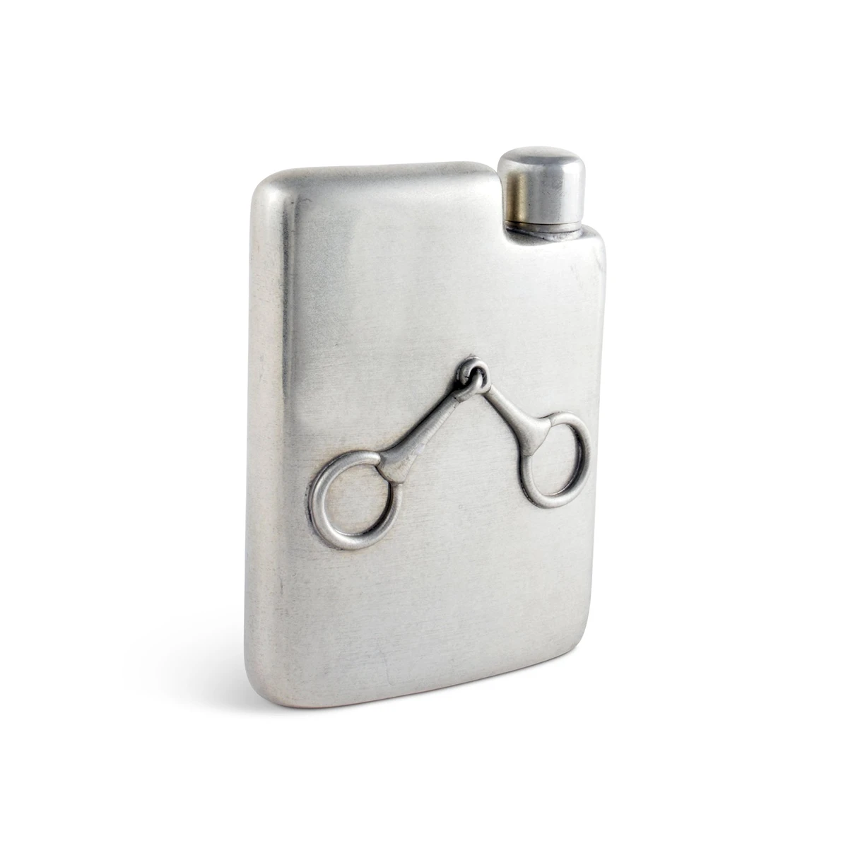 Long days on the trail are set right when you have a wee nip of your favorite drink in your pocket. Ride and drink in style with our O ring snaffle bit embellished, pewter hip flask. The smooth curved design is attractive and pocket-friendly, and the beauty of the pewter is evident at first glance. Perfect as a gift to your favorite equestrian, its excellent build quality and great design are deeply appreciated by the horsey set. Our quality flasks will last a lifetime and you may even pass one down to your kids. Â