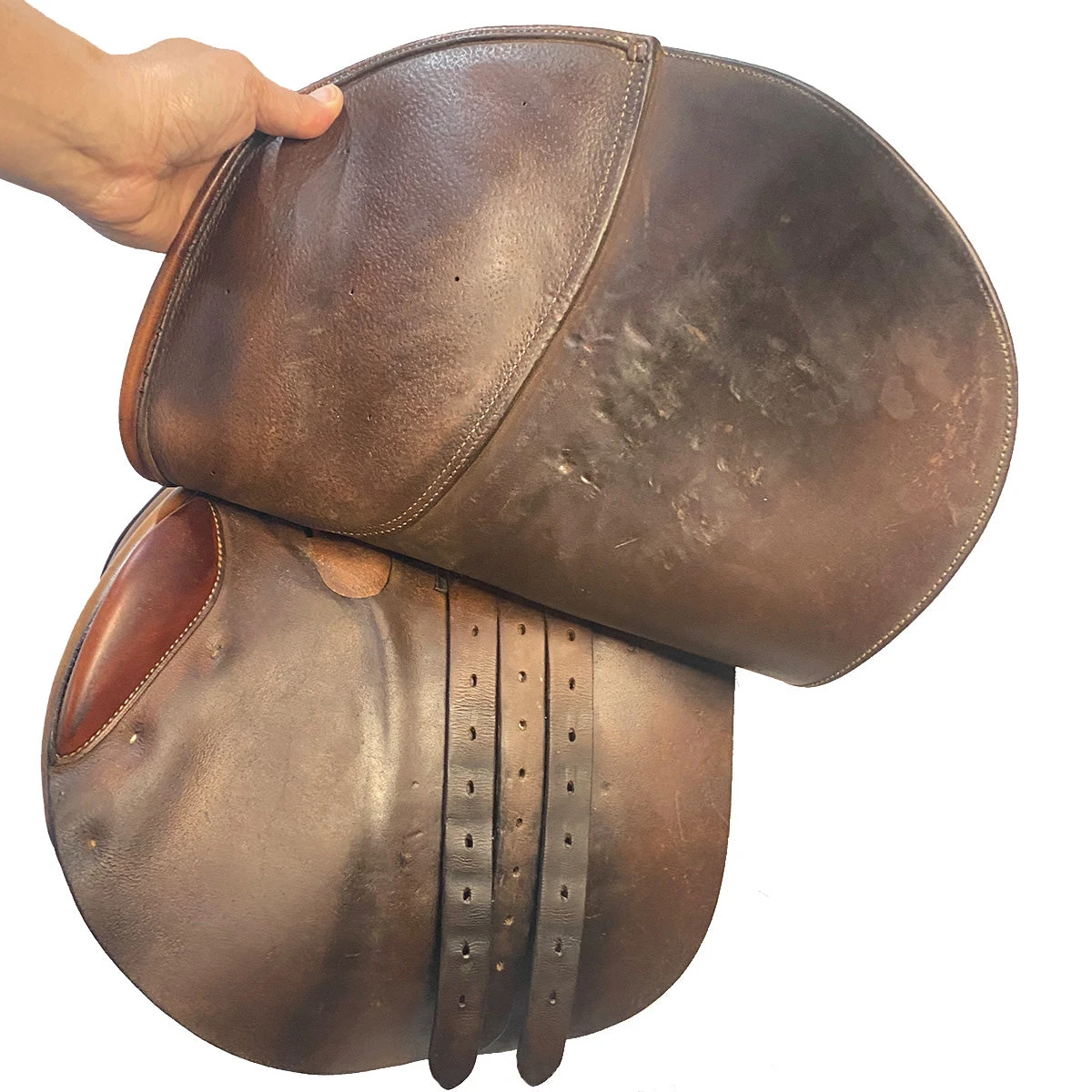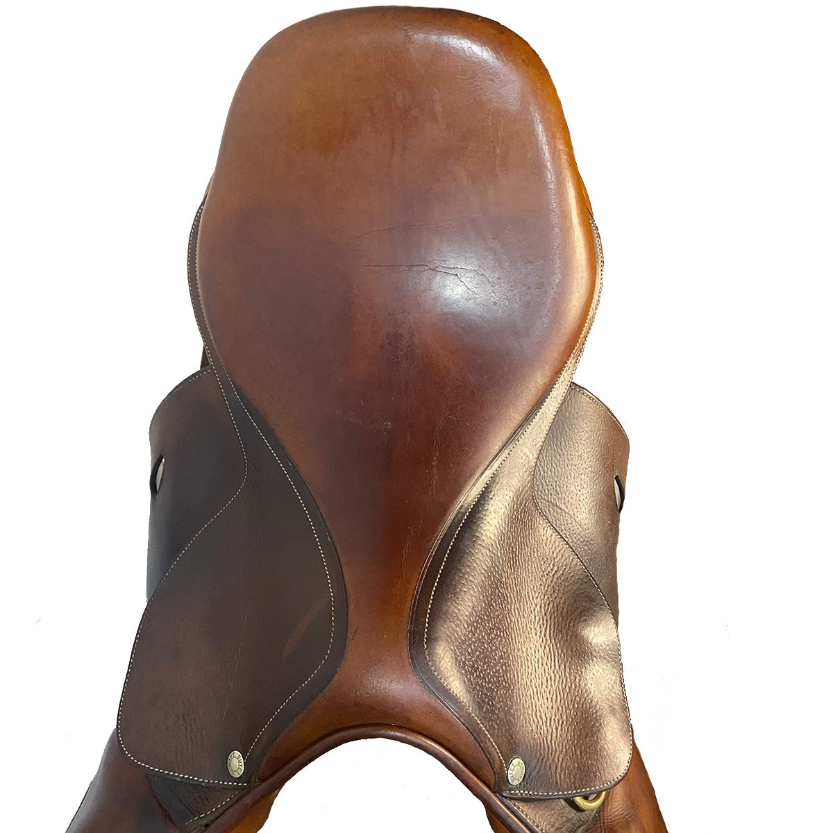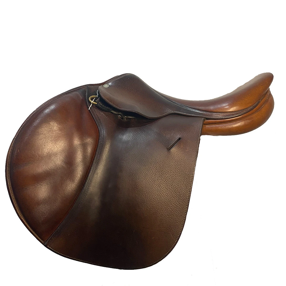 This beautiful used Butet half-deep close-contact saddle has been well cared for. It offers a 17″ seat, a regular tree, and a 2.5 flap. Take it on trial today!Â