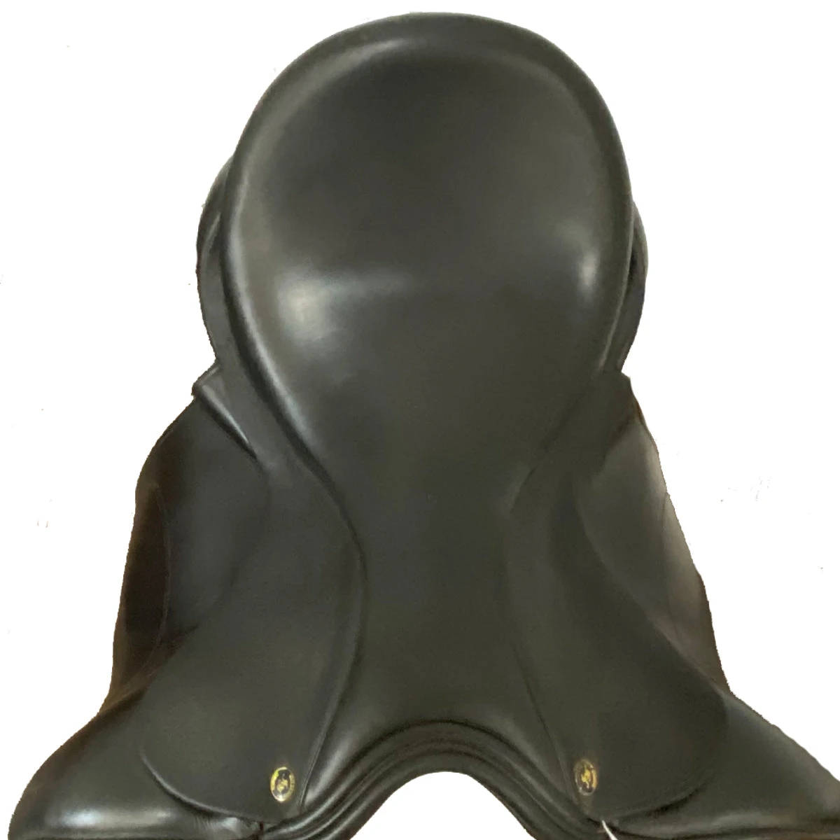 Hulseboss Balance + Dressage Saddle with 17″ Seat and Medium Wide Tree. This Balance + from Hulseboss was custom designed for horses young, developing dressage horses who are just beginning to establish a topline.