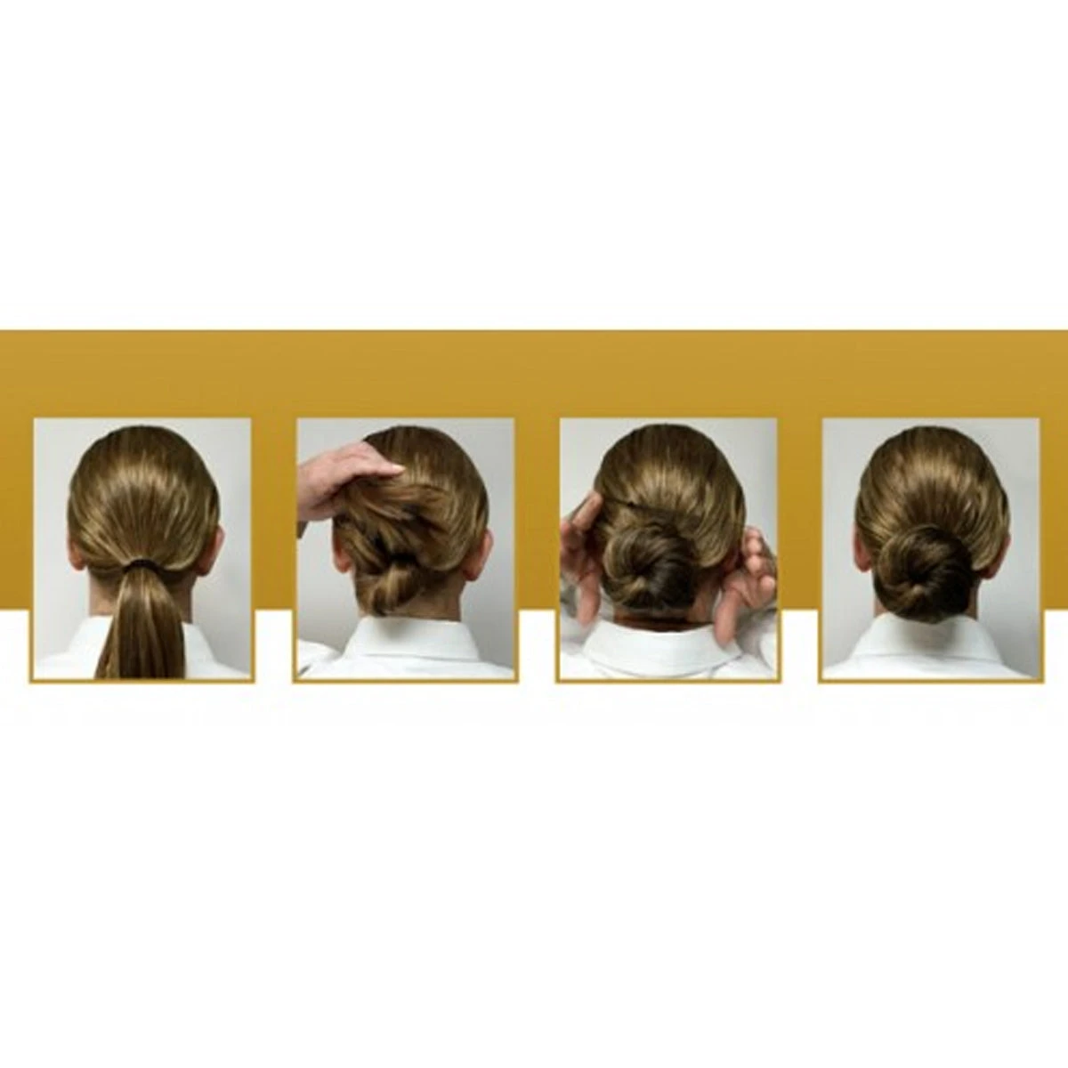 - Kit is contained neatly in a gold organza bag and includes: 2 bun nets, 2 elastic bands, 10 bobby pins.